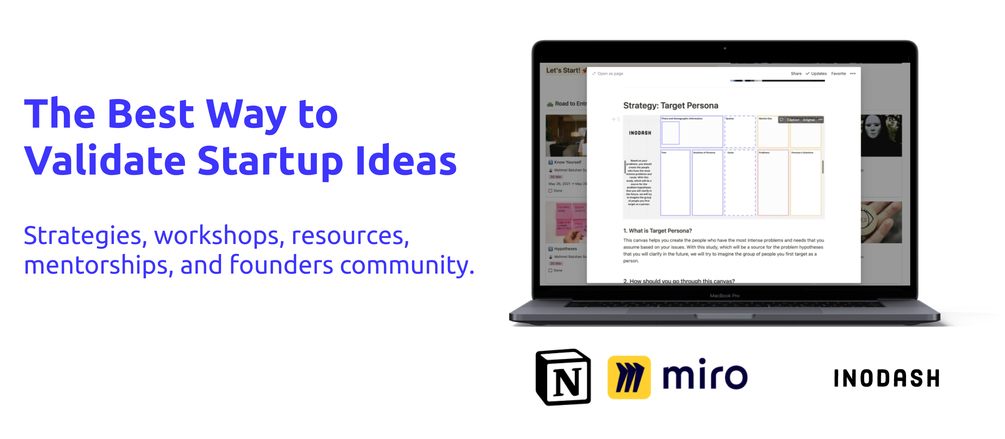 We help you validate early-stage startup ideas and build startups for the right problem with the right strategy on Notion Template & Miro. At the same time, you will be with innovation experts, mentors and founders on the private slack channel.